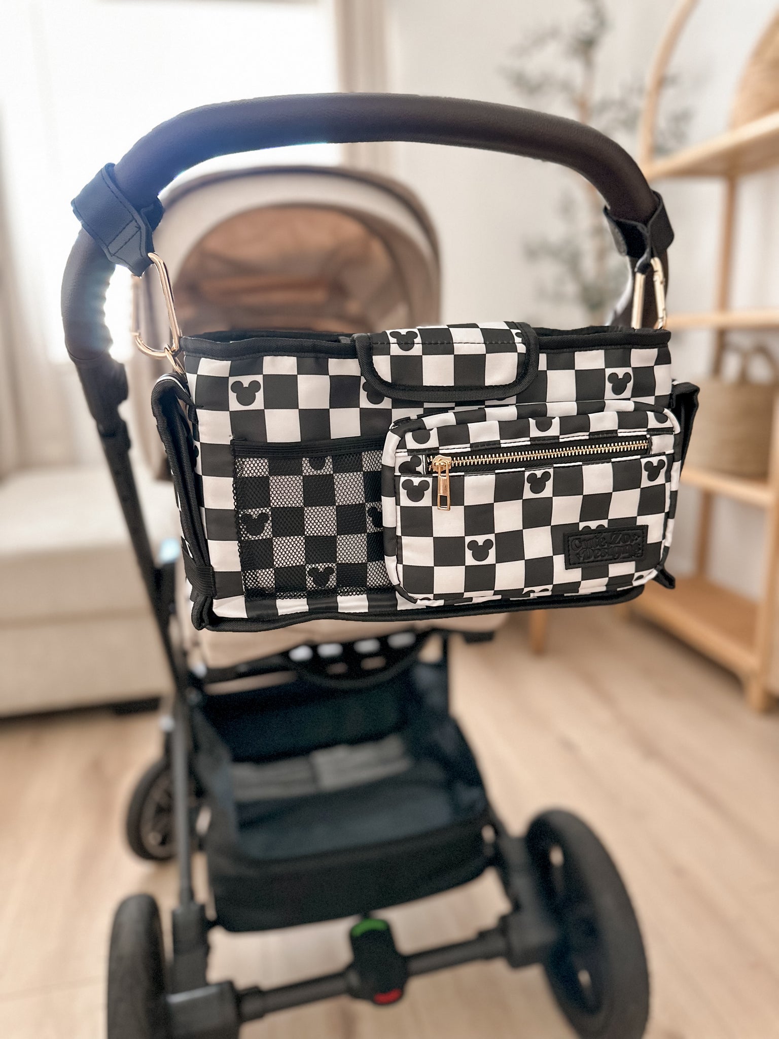 - Adjustable checkered strap extends up to 50” (Best way to use on stroller is to adjust the strap as snug as possible to the size of your handle)